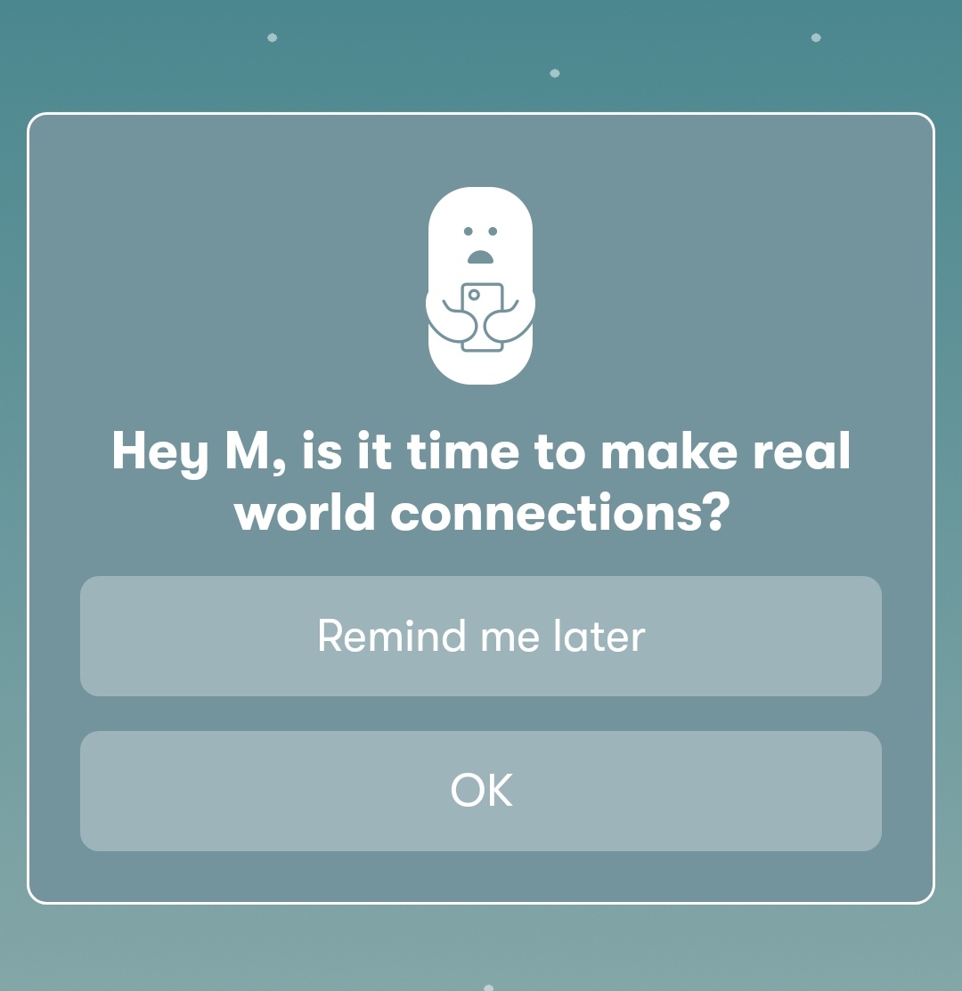 Despite these caveats, the numbers are still much higher than I would like – and I have found that although I struggle to keep within my target number of minutes and unlocks, I am much more mindful about how and when I use my phone (outside of times that I need to for work). The app doesn’t quite create enough nudges to be a really effective way to help me reduce the amount of time on my phone, and has had the major impact of my demanding to use my partners phone to navigate us with when we go exploring together – however as an approach, I love not spending all my time in my phone, and deliberately noticing the world around me a bit more.